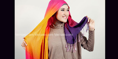 Cara Memakai Jilbab Pashmina Pelangi